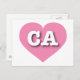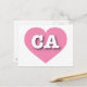 Det här vykortet har ett rosa i coola som innehåller den feta, vita, övre fodral brev CA, förkortningen officiell för Kalifornien, guldstaten. Baksidan av vykortet är tom och väntar på din anpassade text eller dina handskrivna känslor.