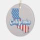 Keramiska keepsaksdekorationer har silhuett från delstaten Kalifornien med texten från stil och patriotiska stjärnor och rand fyllning. Anpassa med namn eller annat meddelande på baksidan.
