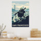 San Francisco posters in the style of the WPA American national parks posters from the 1930s and 1940s. If you're a fan of the WPA-themed posters, this parody WPA national parks poster featuring an anthropomorphic skatboarding hippo, the Golden Gate Bridge, and San Francisco's hills is for you.