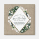 Calla Lily Burlap Bröllop spara datum Magnets - har en bakgrund med en sammanbrott med snöre och blommigt inslag av fern, calla lily single blommor, baby utandning, löv och mycket mer. Textrutan är en elegant triangel med faux foil guld tryckt ram. Den här samlingen innehåller elegant för skogsområden, bohemer (boho), land, rustika och andra liknande bröllop-teman.