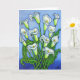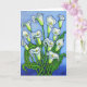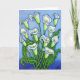 En stiliserad färglös målning av vackra vita Calla lilies som gjorts i en vacker blå, grönt och vit färg palett på ett hälsningskort av Lisa Lorenz