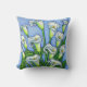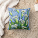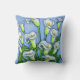 En stiliserad färglös målning av vackra vita Calla lilies som gjorts i en vacker blå, grönt och vit färg palett på dekorativ kudde av Lisa Lorenz