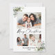 Modern Minimalistisk Elegance Calligraphy Bläck Pen Handskriftlig God jul 3 Photo Helgdag Card innehåller Elegant Watercolor Greenery, Eucalyptus Lövs & Holly Berries.