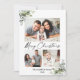 Modern Minimalistisk elegance Calligraphy Bläck Pen Handskriftlig God jul 3 Photo Helgdag Card innehåller Elegant Watercolor Greenery & Eucalyptus Löv
