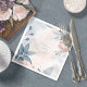 Ett handskrivet, namnteckning teckensnitt i kombination med ett modernt sans-serif används i den här blommigten för att ange en varm och intim ton för bröllop. Den pappra napkin som visas här har din namn och bröllop-dejt med en gräns av lush-blommor och löv i skuggor från dammig blå till mjuk rosa . Sök i ID771 om du vill se andra delara och färg-alternativ för den här uppsättningen.