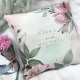 Ett handskrivet, namnteckning teckensnitt i kombination med ett modernt sans-serif används i den här blommigten för att ange en varm och intim ton för dekorationen. Dekorativ kudde som visas här har namn och bröllop-datumet med en gräns av lush-blommor och löv i skuggor från mjuk mauve till sage-grönt. Sök i ID771 om du vill se andra delara och färg-alternativ för den här uppsättningen.