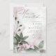 Ett handskrivet, namnteckning teckensnitt i kombination med ett modernt sans-serif används i den här blommigten för att ange en varm och intim ton för bröllop. Inbjudan som visas här är att spola blommor och löv i skuggor från mjuk mauve för att skeva grönten mot en bakgrund av drömmande vattenfärgsfärgat stänk. Sök i ID771 om du vill se andra delara och färg-alternativ för den här uppsättningen.