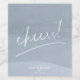 Ett handskrivet, namnteckning teckensnitt i kombination med ett modernt sans-serif används i den här blommigten för att ange en varm och intim ton för bröllop. På den här etiketten från bröllop vin finns elegantens kalligrafi "Cheers!", datum för namn och bröllop på en enkel vattenfärgsbakgrund med dammblått. Sök i ID771 om du vill se andra delara och färg-alternativ för den här uppsättningen.