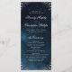 Det här elegant bröllop-programkortet har ett traditionellt blomningsfritt hörn och ett klassiskt skript på moody marin blå vattenfärgsbakgrund, underbar för klassisk bröllop, vintage bröllop. Visa alla matchande delar i samlingen