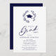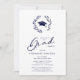 Chic Modern Calligraphy Grad Cap och Laurel Wanderel Blue Studentfest Investigation ...Vår enkla inbjudan till marin studentfest innehåller en hatt och tassel inuti en lagerkrans följt av en modern kalligrafi av ord Grad följt av "party" och inbjudningstexten i klassiskt marvattentat och sans serif-typografi. All text kan enkelt revideras i anpassningsmallen.