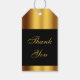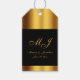 Märkrna för lyxbröllop har faux guld-kalligrafi på en svart bakgrund som gränsar till glansig guld. Anpassa med ditt monogram, namn och bröllop-datum. Baksidan av märkrn står "tack". Gratulerar på bröllop och bästa önskemål. Designad av Susan Coffey.