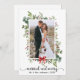 Calligraphy Heart Married and Merry Red Bow Photo Julkort