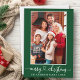 Modern Calligraphy Heart Script Merry Christmas Photo Holiday Card - Forest Green Background
