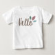 Hej calligraphy brev, tre fjädrar i rosa, blue, grönt färg, boho design