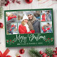 Modern Roligt Calligraphy Script 5 Photo Couple Photo Collage God jul Postcard innehåller Watercolor jul Holly Berries - Forest Grönt Background