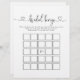 Den här möhippan bingo- för kalligrafi i kärlek är perfekt för en modern möhippa. Den enkla och elegant designen har skript av typen klassisk och finare i svartvitt.