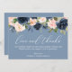Modern Elegant Vacker Calligraphy Kärlek och tack Bröllop Tack - Vattfärg Dusty Blue Rosa Blommigt med Ro och Grekland