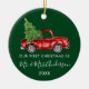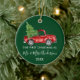Modern Trendig Calligraphy Script Vår första jul som Mr och Mrs Personlig Ornament omfattar Watercolor Vintage Red Lastbil med Julgran - Forest Grönt