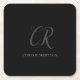 Calligraphy Monogram Namn Black Grått Anpassningsb Underlägg Papper Kvadrat