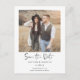 Calligraphy Photo Bröllop spara datum vycard Simple Photo Spara vycard med par-fotografiet i ett enkelt vitt ram på framsidan och ett modernt kalligraftitel. Baksidan av vykortet är organiserad för par-meddelandet osv.