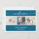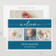 Announce the arrival of your bundle of joy with this calligraphy photo collage baby announcement card. The design features a white space for your first baby portrait, clean navy blue rectangles to add names, birthdate, etc. The modern calligraphy script reads "welcome", adds grace and elegance to the template. Whether you’re welcoming a baby girl or baby boy, this design offers a beautiful way to introduce your newest miracle to the world.