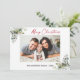 Modern Minimalistisk Elegance Calligraphy Bläck Pen Handskriftlig God jul Photo Helgdag Card innehåller Elegant Watercolor Greenery, Eucalyptus Lövs & Holly Berries. Red Script.