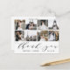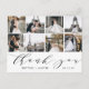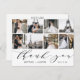 Den här eleganten tackar du för att du har 8 foton med "tack" i calligraphy-skript tillsammans med ett par namn och bröllop-datum. Baksidan av detta vykort har gott om utrymme för skriva av ett personligt tackkort, tillsammans med linjer för det utsändande adress.