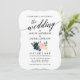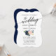 Calligraphy Script Blue Rosa Blommigt Bröllop Inbjudningar