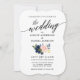 Modern Elegant Calligraphy-skript, Watercolor Blue och Rosa Blommigt bröllopsinbjudan