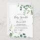 Den här kalligrafskriften grönt foliage baby sprinkle-inbjudan är perfekt för en modern babydusch. Konstruktionen har vattenfärgad handdragen elegant botaniskt eukalyptus grenar och löv, placerad i vackra bouquets och geometriskt mönster.