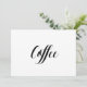 Enkelt och elegant svart och vitt kalligrafi stil "Kaffe" bröllop-tecken. Det här "kaffet" bröllop-tecknet ser underbart ut att tryckas på en papper, om du behöver något mer traditionell använda, Laid, Linen eller Columned, för en rustik känsla användor Artisan Kraft, om du vill tillföra glam, använda Luxe. Om du klickar på knappen "anpassa den" kan du öppna redigeraren verktyg och välja en annan bakgrund färg. Det här är en platt tryckt 5-tums x 7-tumsskylt som ser ut som elegant i bild ram.