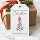 Calligraphy Watercolor Christmas Tree Red Bow Presentetikett