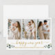 Modern Calligraphy Script Gott nytt år 3 Photo Helgdag Card innehåller Watercolor Eucalyptus Lövs. Guld