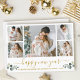 Modern Calligraphy Script Gott nytt år 5 Photo Helgdag Card innehåller Watercolor Eucalyptus Lövs. Guld
