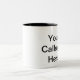 Kaffekopp med din callsign och/eller annan text som är skriftlig på den i ditt primat av formatet, stilsorten och färg.