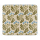 Seamless pattern of stylized blue flowers and green leaves on a beige background. The design is repetitive and conveys a calm, natural elegance.