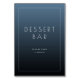 This wedding tabletop sign features a minimalist design with a vertical rectangular layout, showcasing a gradient of dark blue hues that create a subtle depth. The clean, modern sans-serif typography highlights the phrase "DESSERT BAR" in large uppercase letters, inviting guests to indulge with the friendly message "PLEASE TAKE A TREAT!" below it. The simple color palette and lack of decorative elements emphasize clarity and elegance, making it perfect for creating a welcoming atmosphere at your event. Its straightforward style ensures easy readability while maintaining an approachable and contemporary aesthetic.