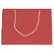 A textured red background with subtle vertical and horizontal lines, resembling a woven fabric. The pattern adds depth and a warm, inviting tone.