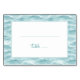 This table number features a serene nautical theme with a rectangular layout, showcasing a central white space bordered by a light blue line. The background is adorned with dynamic ocean wave patterns in varying shades of turquoise and aqua, creating a calming seaside atmosphere. The design employs smooth digital illustration techniques for a modern, minimalist look, complemented by elegant script typography that adds a touch of sophistication. Perfect for beach-themed events or any occasion seeking a tranquil vibe, this table number combines style and functionality seamlessly.
