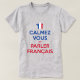 Bold 'Calmez vous et parler français' design celebrates the French language and humor. Ideal for francophiles and learners who love France and the French flag. Great for travel and language classes.