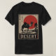 Silhuetterad kamel som korsar ändlös ökenutbredning under den blinkande röda sol. Vintage resor poster estetisk fångsten romantik och påfrestningarna på ökenresor. Perfekt för resenärer i äventyr, kulturentusiaster i Östran i Mitten och alla som dras till mystiken i ökennomadiskt liv.