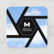 Modern unique and creative style with spaces for monogram, QR code and logo that can be used or replaced with desired one. Geometric style in shape of camera lens.