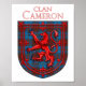 Cameron Scottish tartan plaid mönster-designen för Cameron Klan Family under den röda Lejona Rampant Shield of Scotland.