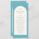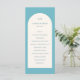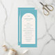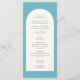 Modern bröllopsprogram med ditt monogram tillsammans med din ceremoni och bröllopsfest inuti en elfenbensbåge i en färgad över en turkos-/akvaribakgrund/tealbakgrund. Denna enkla men ändå elegant-utformning med spa som färg kan vara underbar för ett vår eller sommar-bröllop.