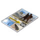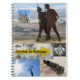En anteckningsbok med en täcka som presenterar flera foto från den Camino de Santiago pilgrimsfärdrutten, inklusive foto av en kammusslasnäckawaymark, en vallfärdastaty, den Santiago domkyrkan, en gul pil, en St James kor och att fotvandra kängor.