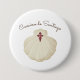 Round pin button designed for Camino de Santiago pilgrims. The design features a scallop shell and cross symbol, commonly associated with the pilgrimage route, displayed on a circular surface with a clear and simple layout.