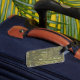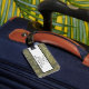 En bagagemärkre som presenterar en kamouflagedesign. Personifiera texten beklär på inre rent område skisserat i svart.