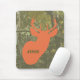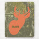 En mousepad som presenterar en illustration av ett orange hjorthuvud över en kamouflagebakgrund. Personifiera med ditt namn.