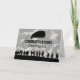 En enkel militär hälsningskort med svartvit kamouflage med vit täckmantel, ord "grattisar och deras namn", soldater i silhouette.