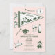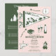 A cute hand drawn design featuring bachelorette camping theme illustrations. This green and pink camp bach weekend design is ideal for glamping camping bachelorette weekends, camping girls trip bachelorette parties in mountain, forest or lake destinations.